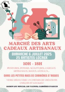De nombreux artistes prendront place au coeur du village de Cabrières d’Aigues pour vous proposer de nombreuses oeuvres (peintures, poteries, sculptures, bijoux, cadeaux artisanaux, etc)